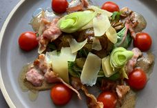 Салат с беконом и карамелизированной грушей