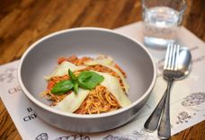 спагетти с говядиной и красным соусом