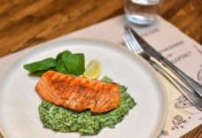 Стейк из красной рыбы на подушке из шпината