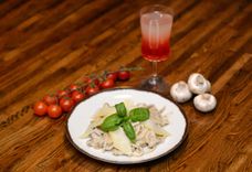 Букатини с курицей и грибами